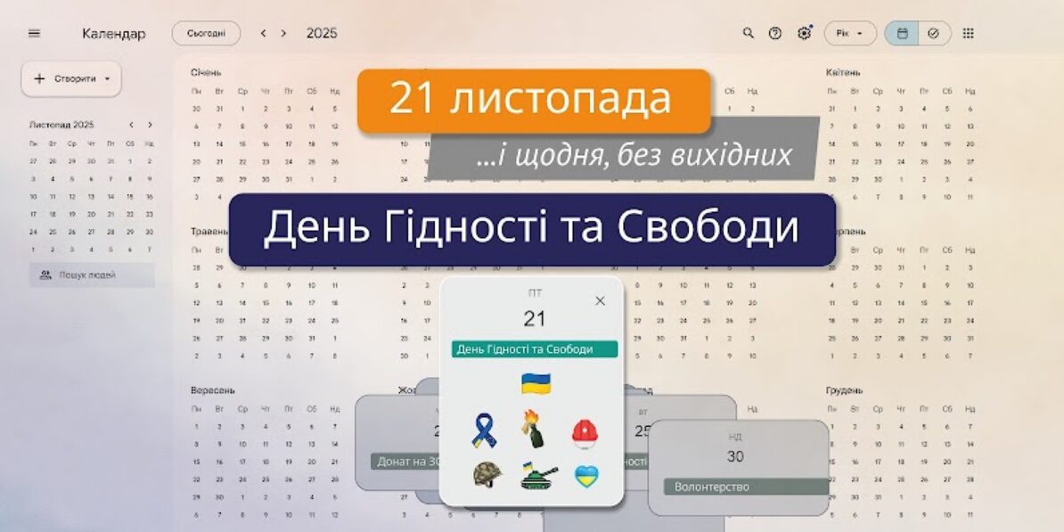 Саме 21 листопада у 2004 та 2013 роках тисячі громадян вийшли на Майдан Незалежності в Києві. У 2004 році вони боролися за чесні й прозорі вибори, а через дев’ять років – за право України на самостійний європейський шлях і за власну гідність.