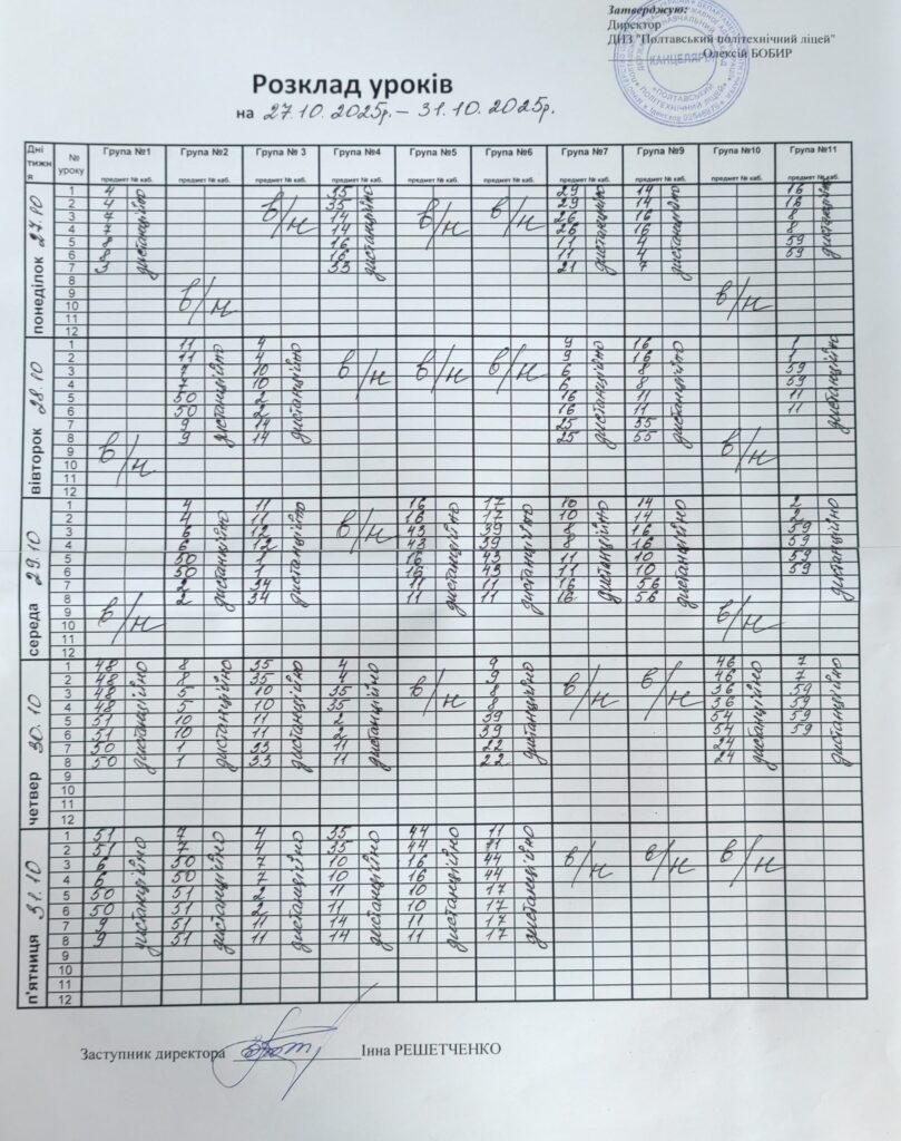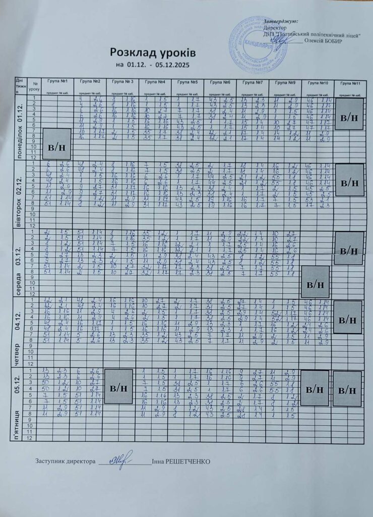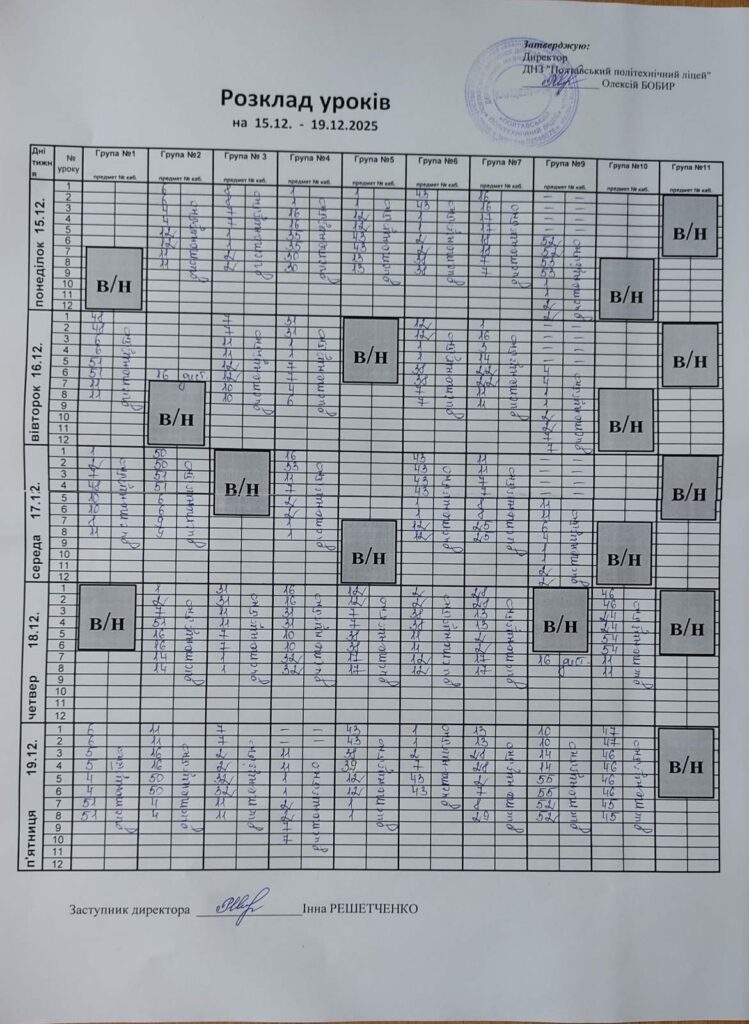 На фото розкладу, що підвантажиться уважно дивимось дату, день та шукаємо власну групу.