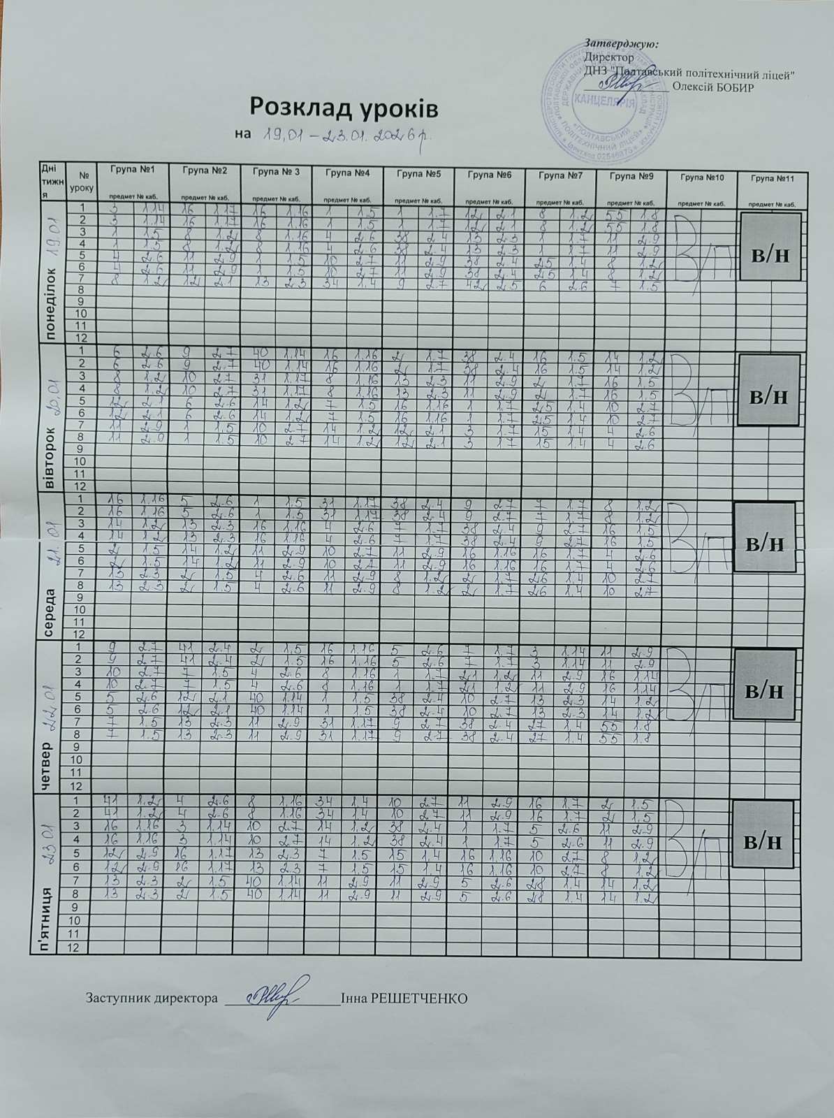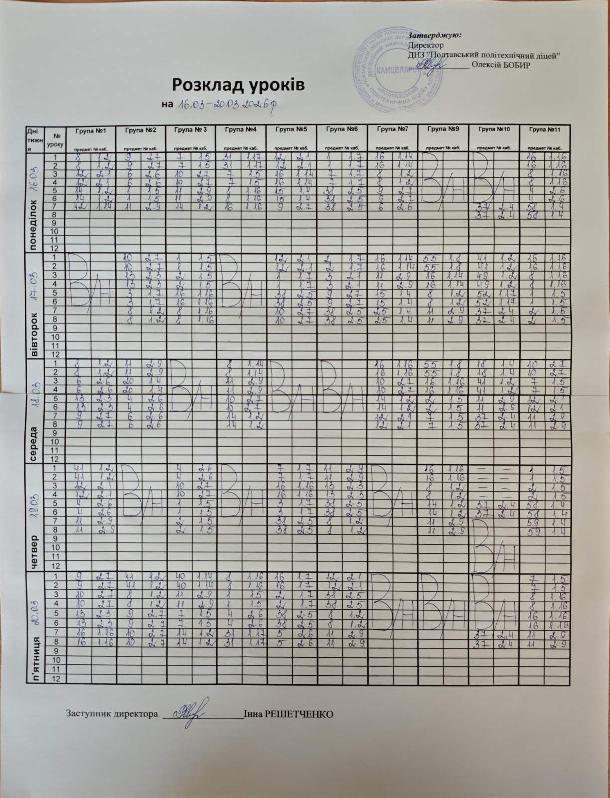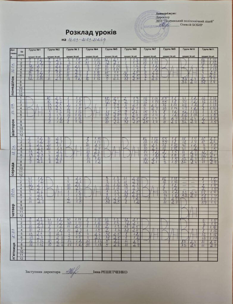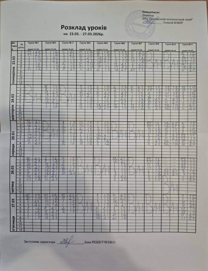 На фото розкладу, що підвантажиться уважно дивимось дату, день та шукаємо власну групу.